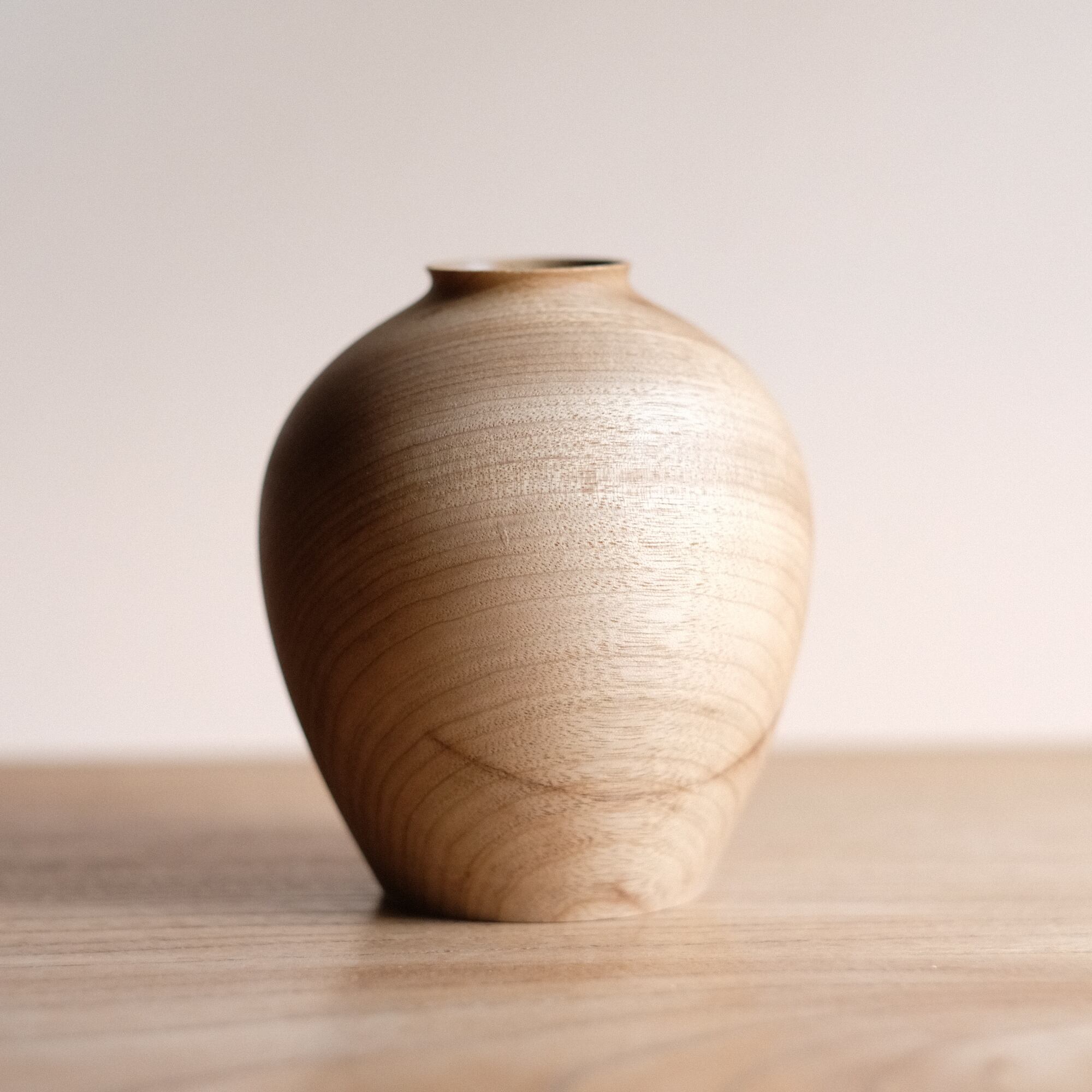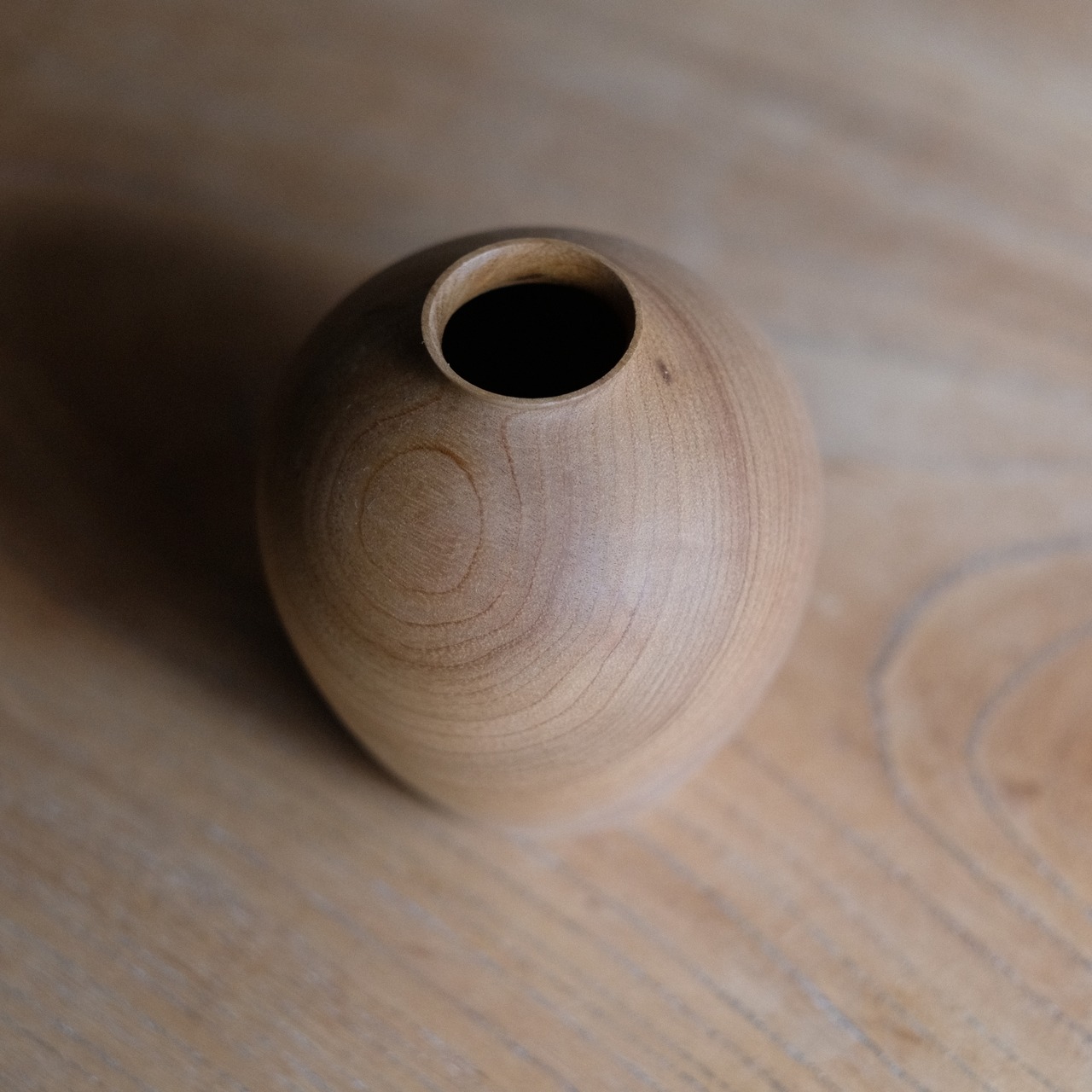 齋藤秀雄のライフワークとして木工旋盤で制作している壺。