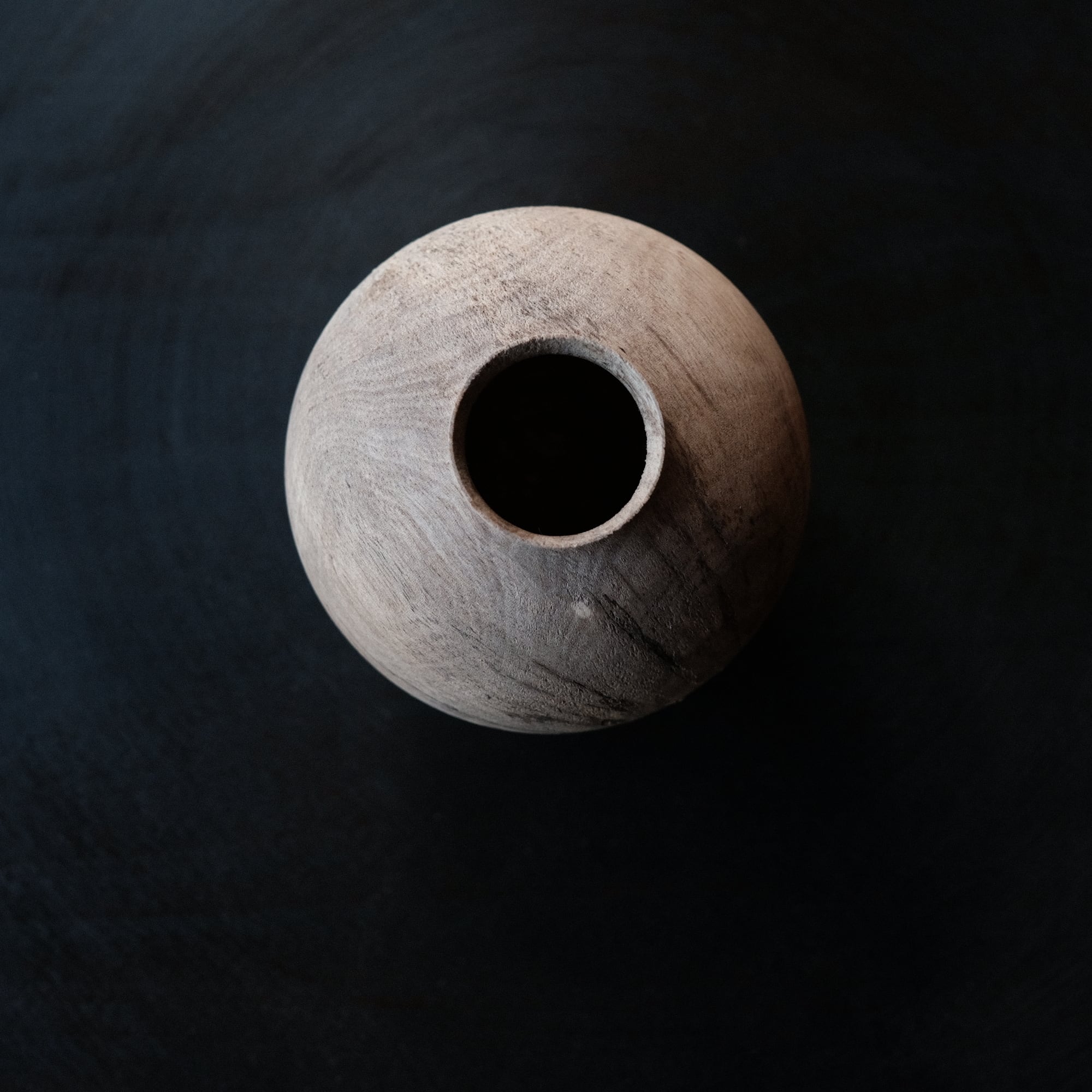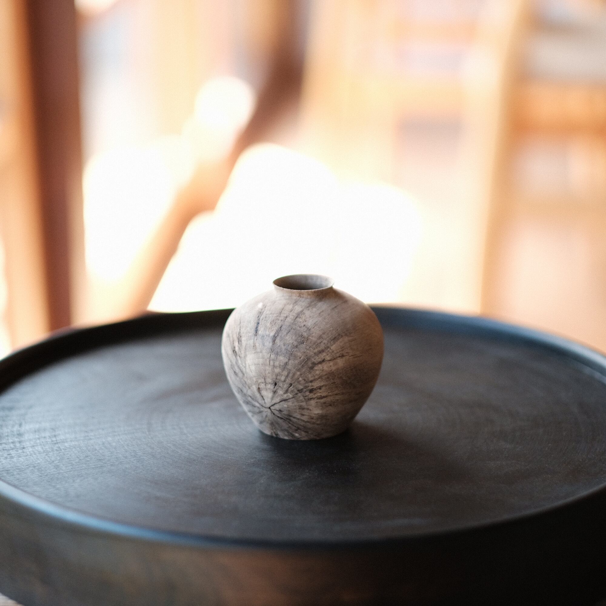 齋藤秀雄のライフワークとして木工旋盤で制作している壺。