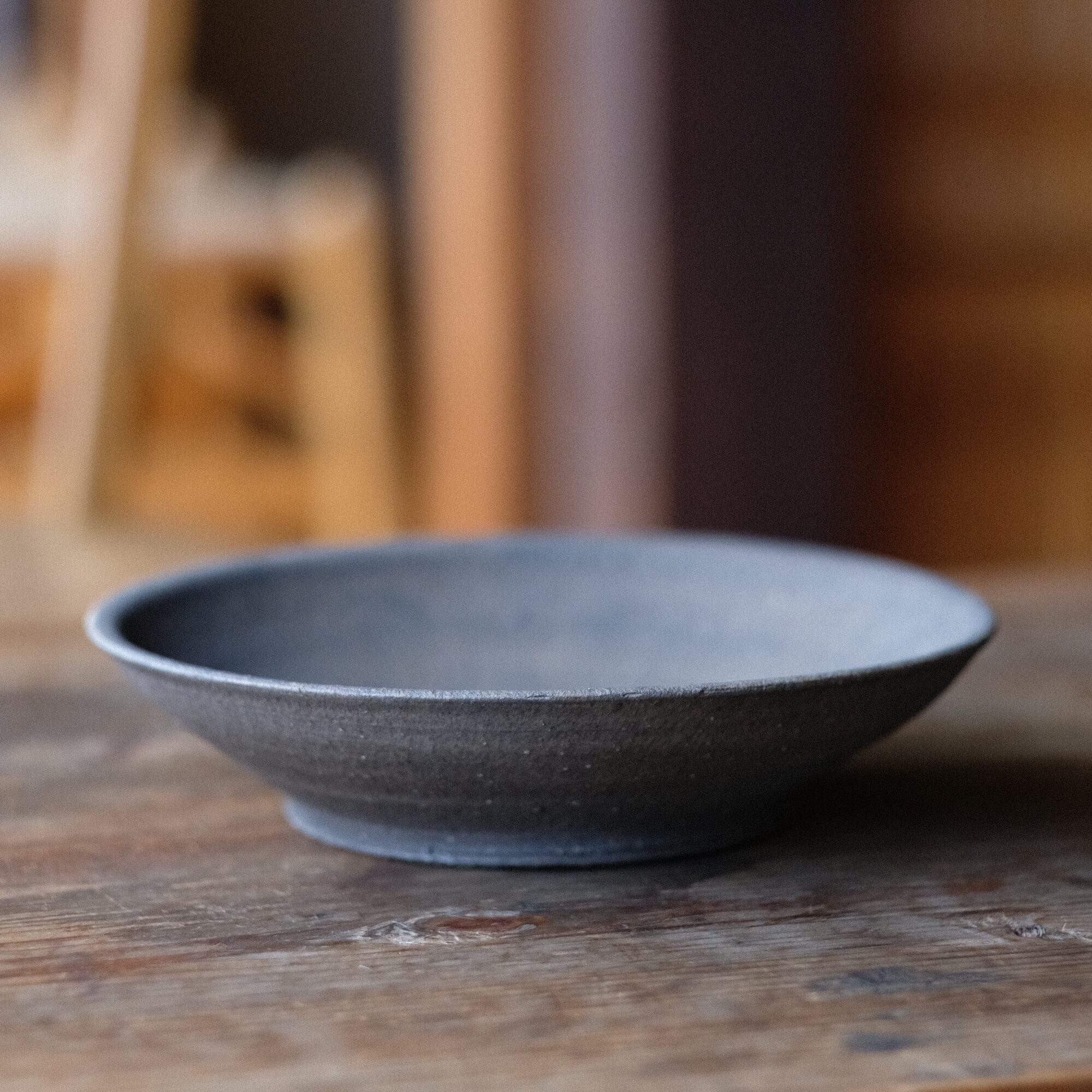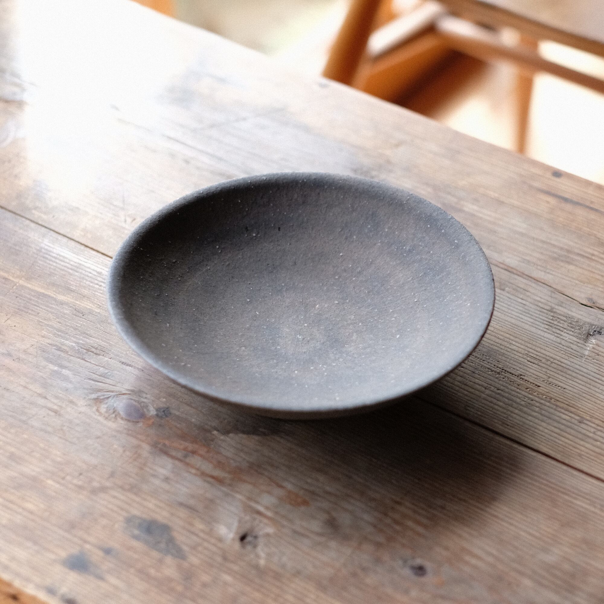 焼締は成形した粘土の上から収縮率の違う粘土をかけ、焼成の時に細かい亀裂がつくられる。無数のひび割れが入った表情と錆びた色合いが堪らなくかっこよい、一方、落ち着きと安心感もあり、嫌味がない。ある程度の重みもよい。