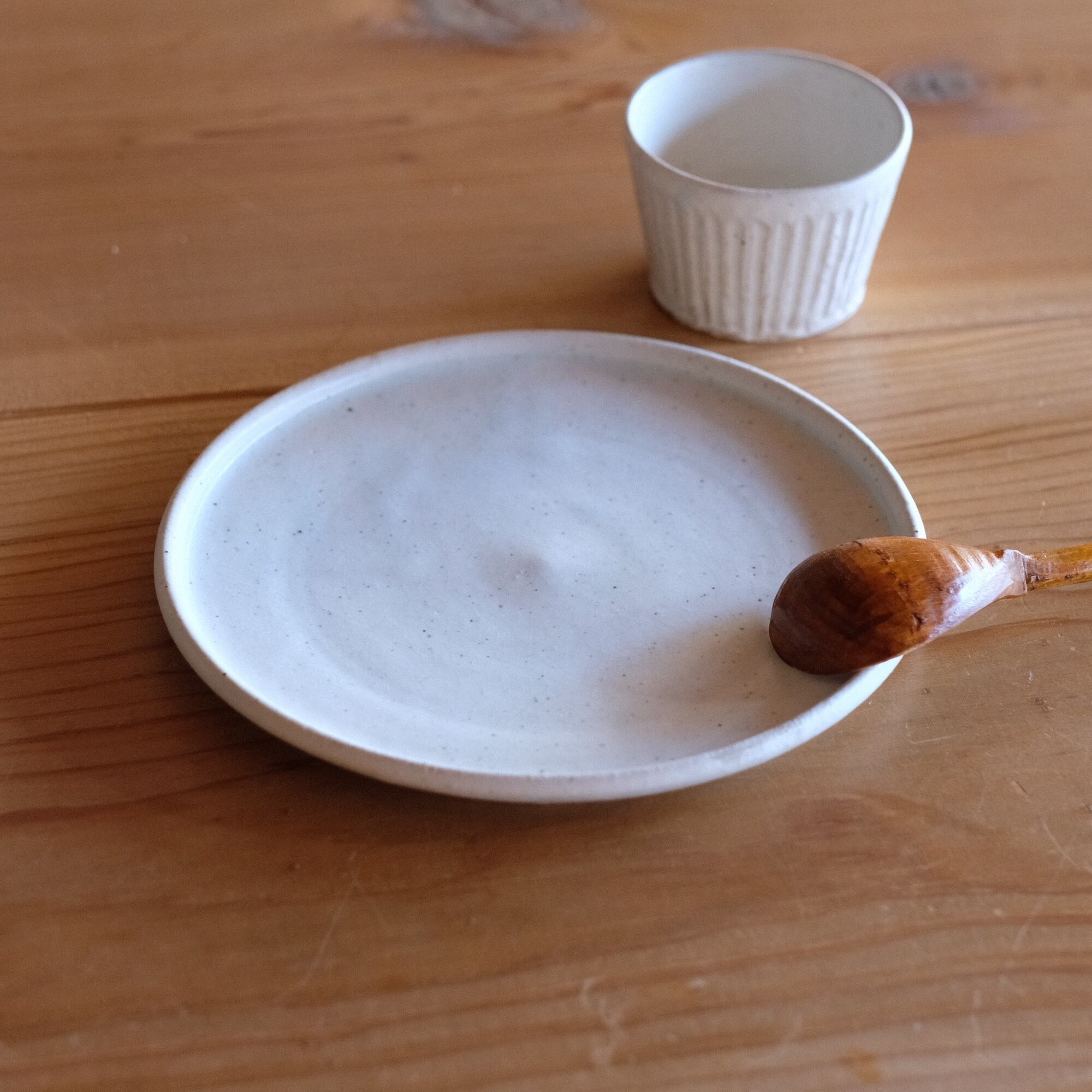 粉引きマット玉縁7寸皿・ 八木橋昇
