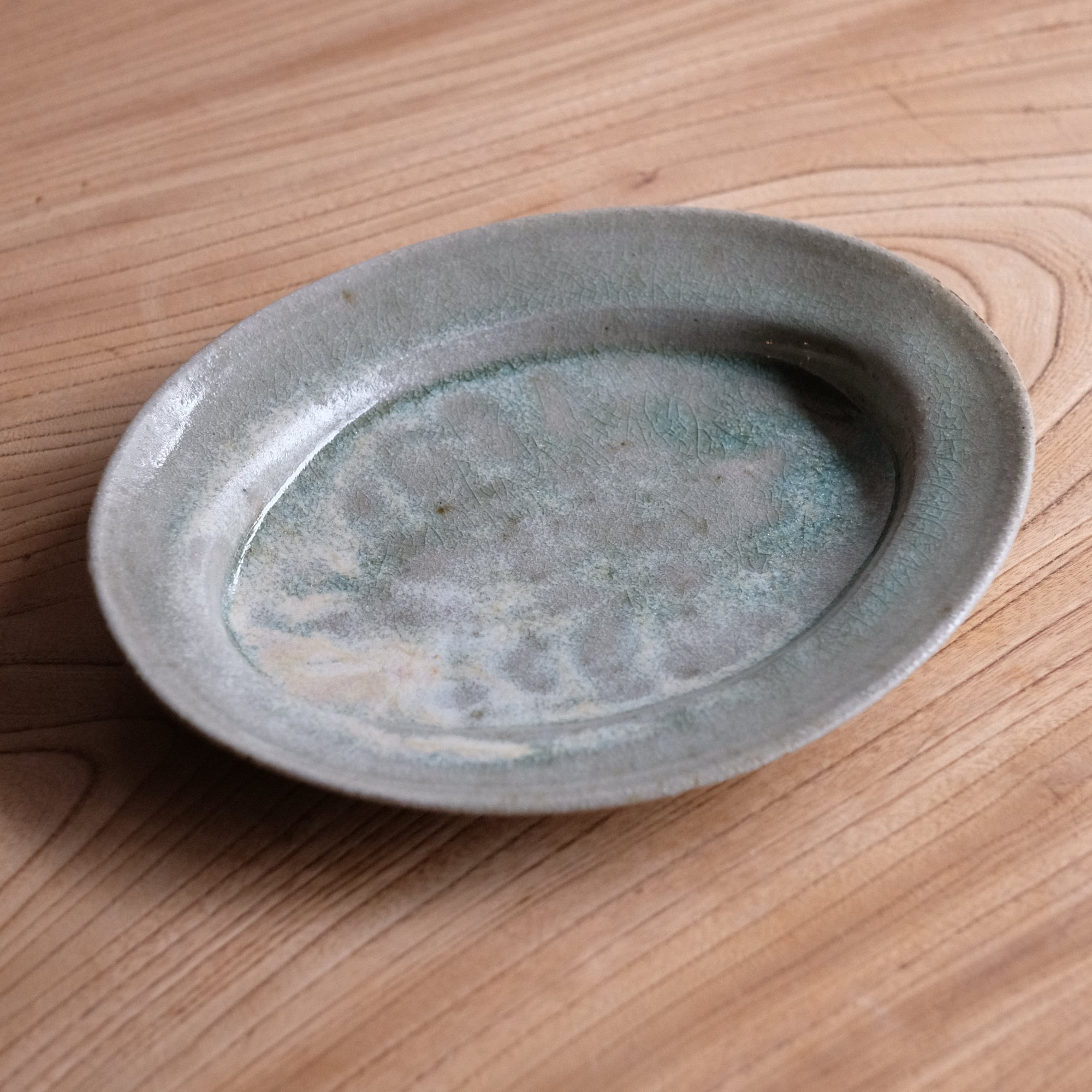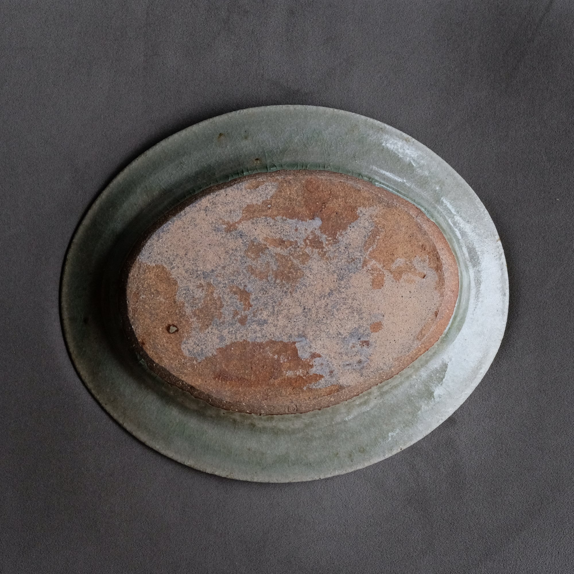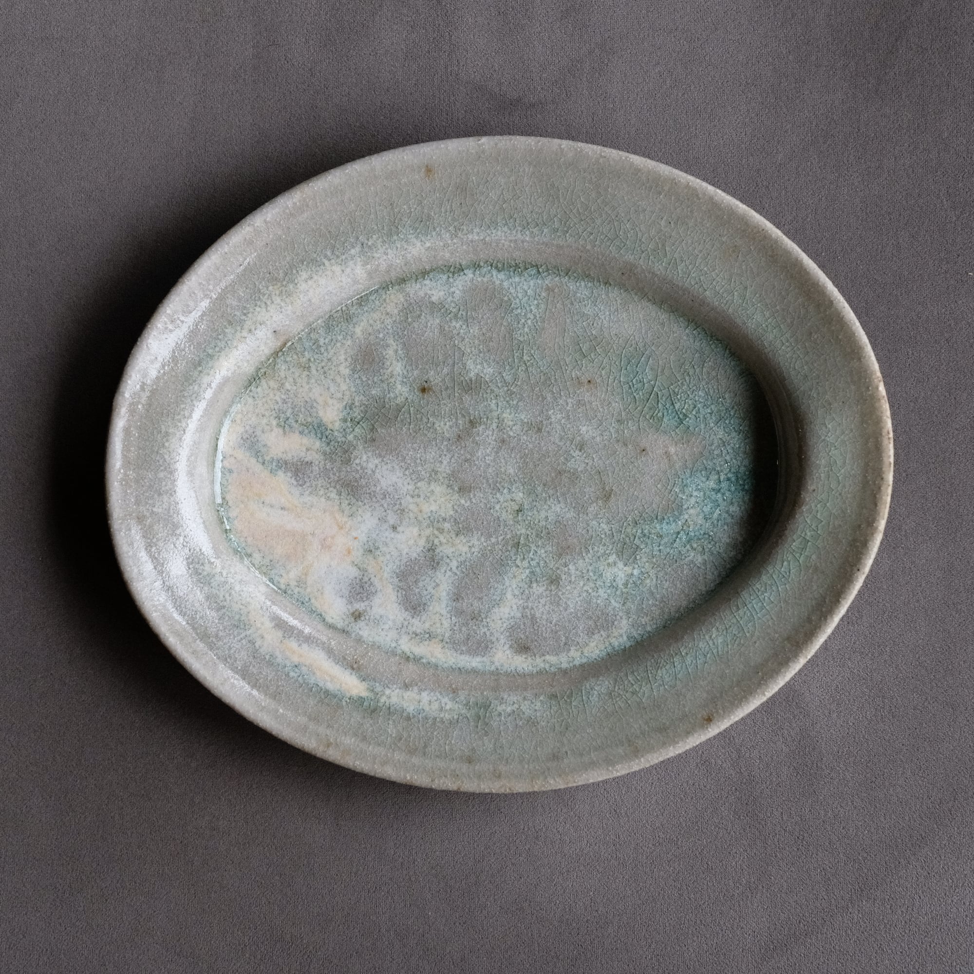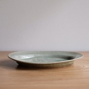 古灰釉 楕円リム皿・ 八木橋昇