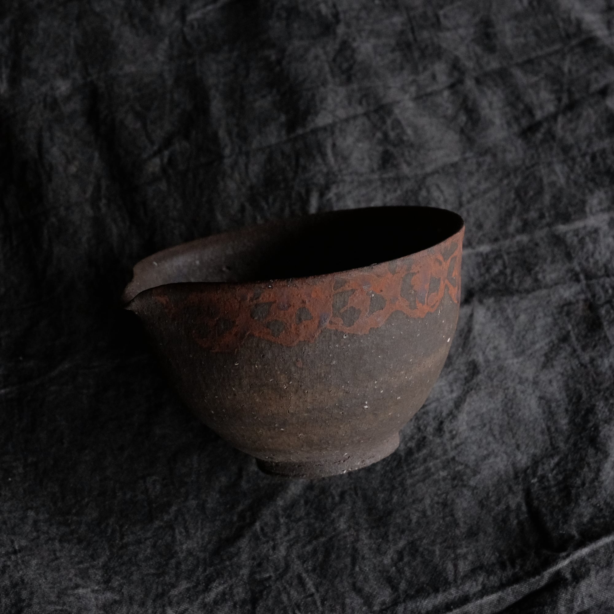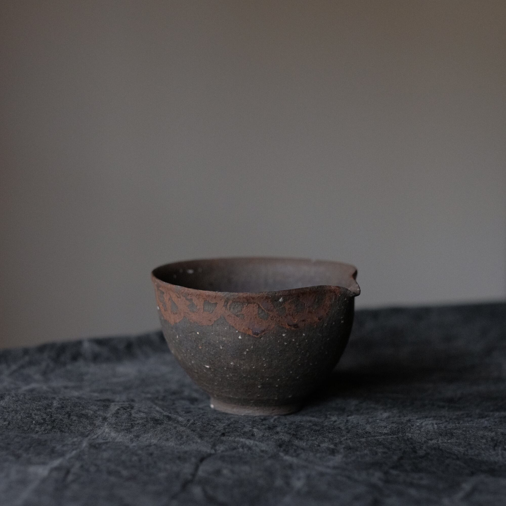 橘天馬 焼締片口 鉄絵 j