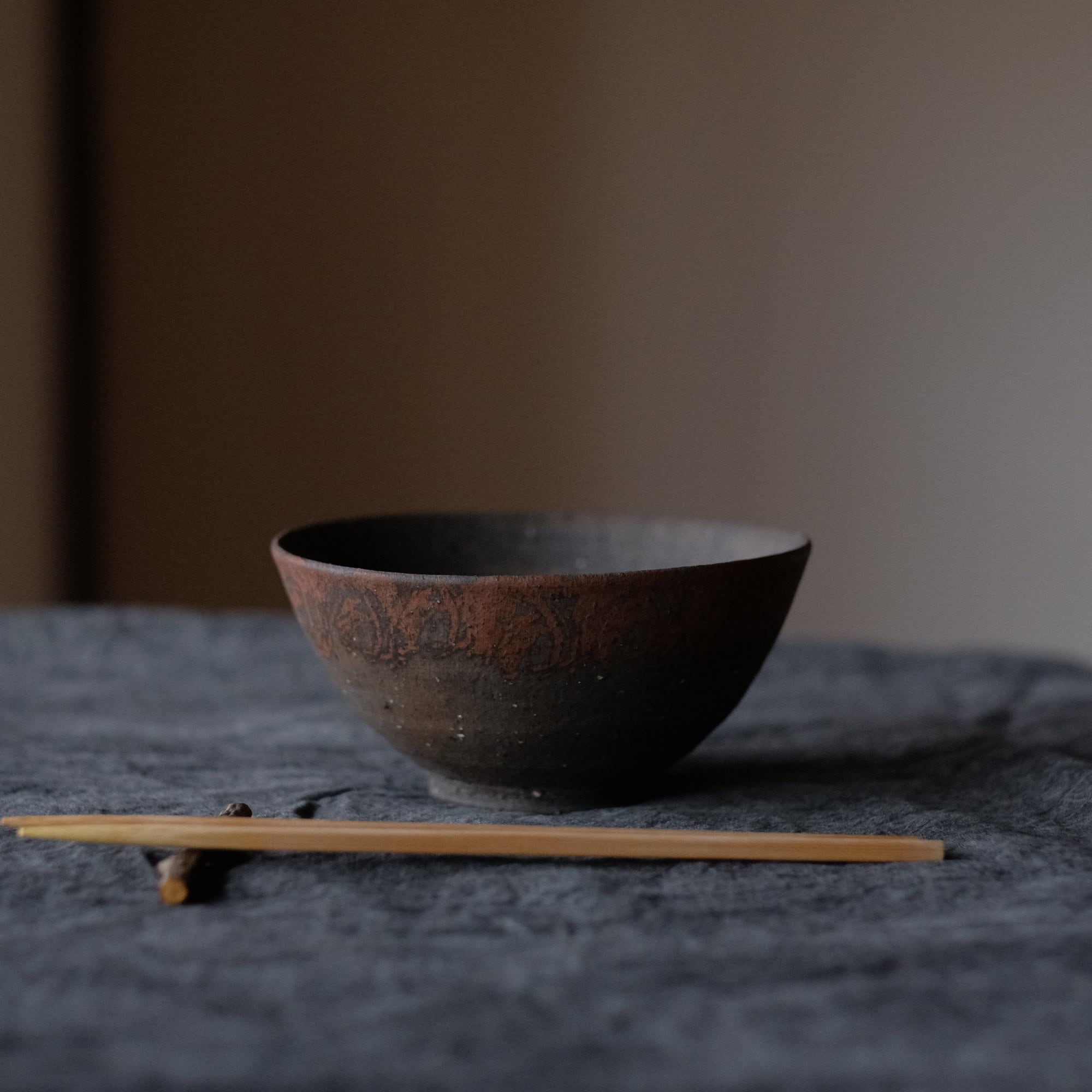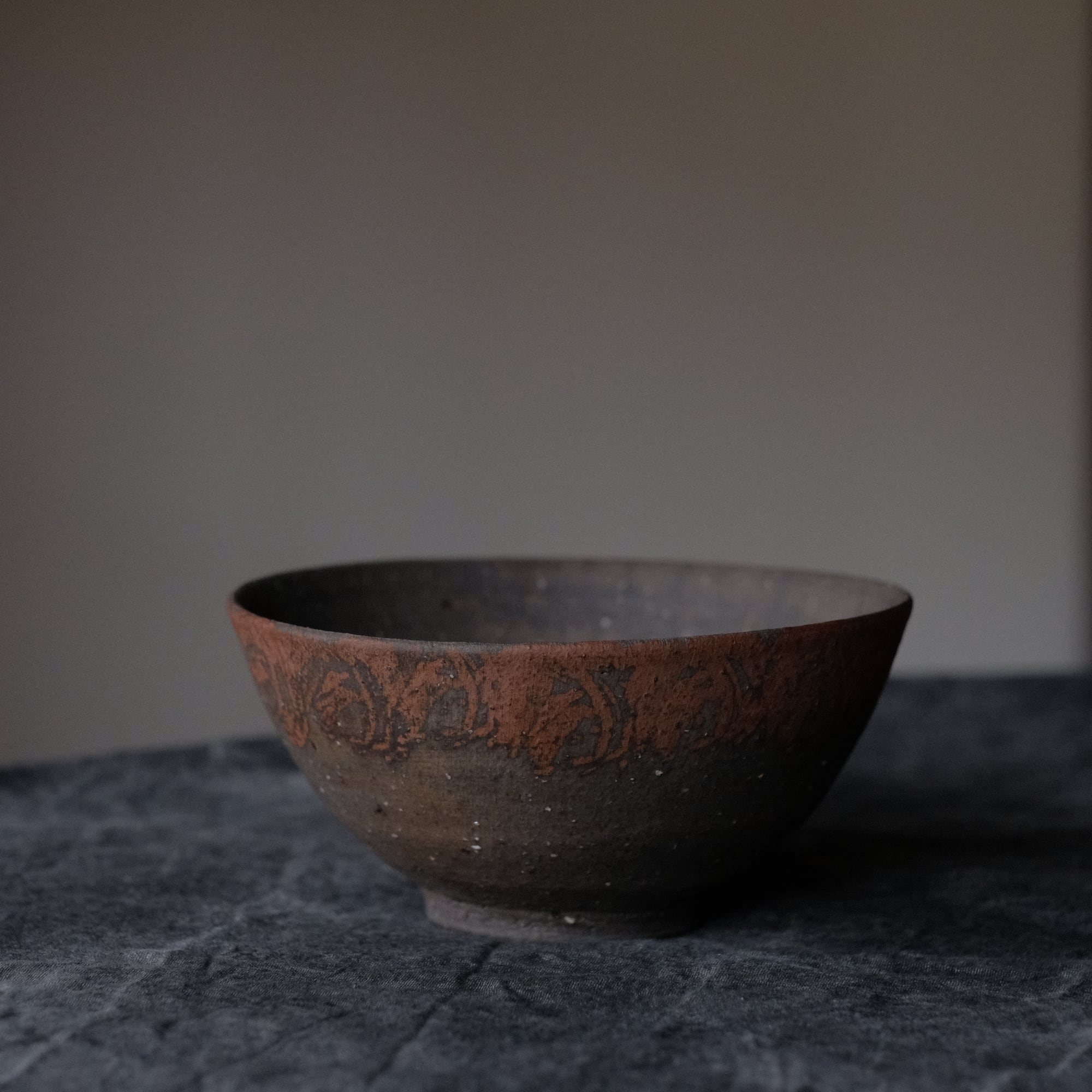橘天馬 焼締中鉢(小ぶり) 鉄絵 o