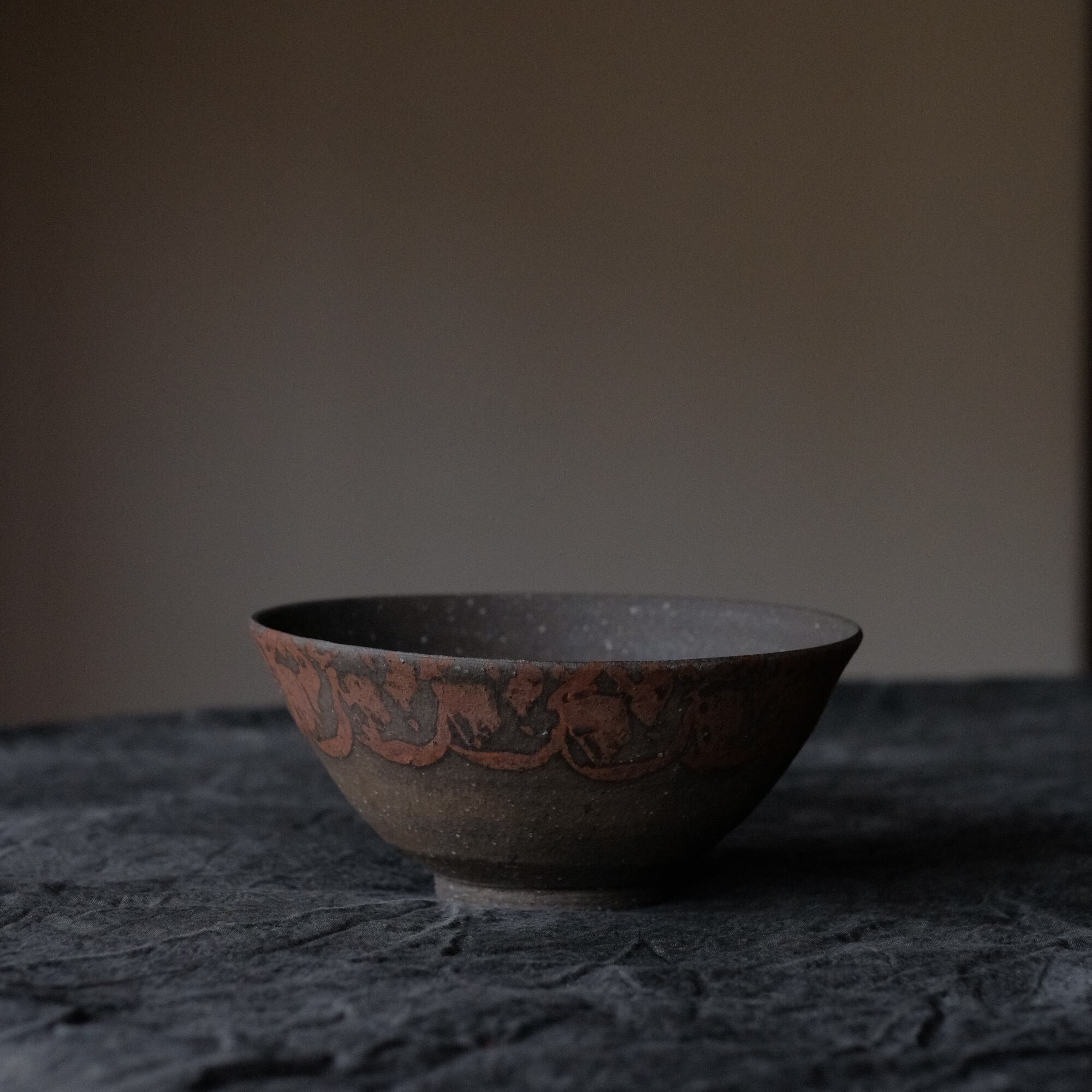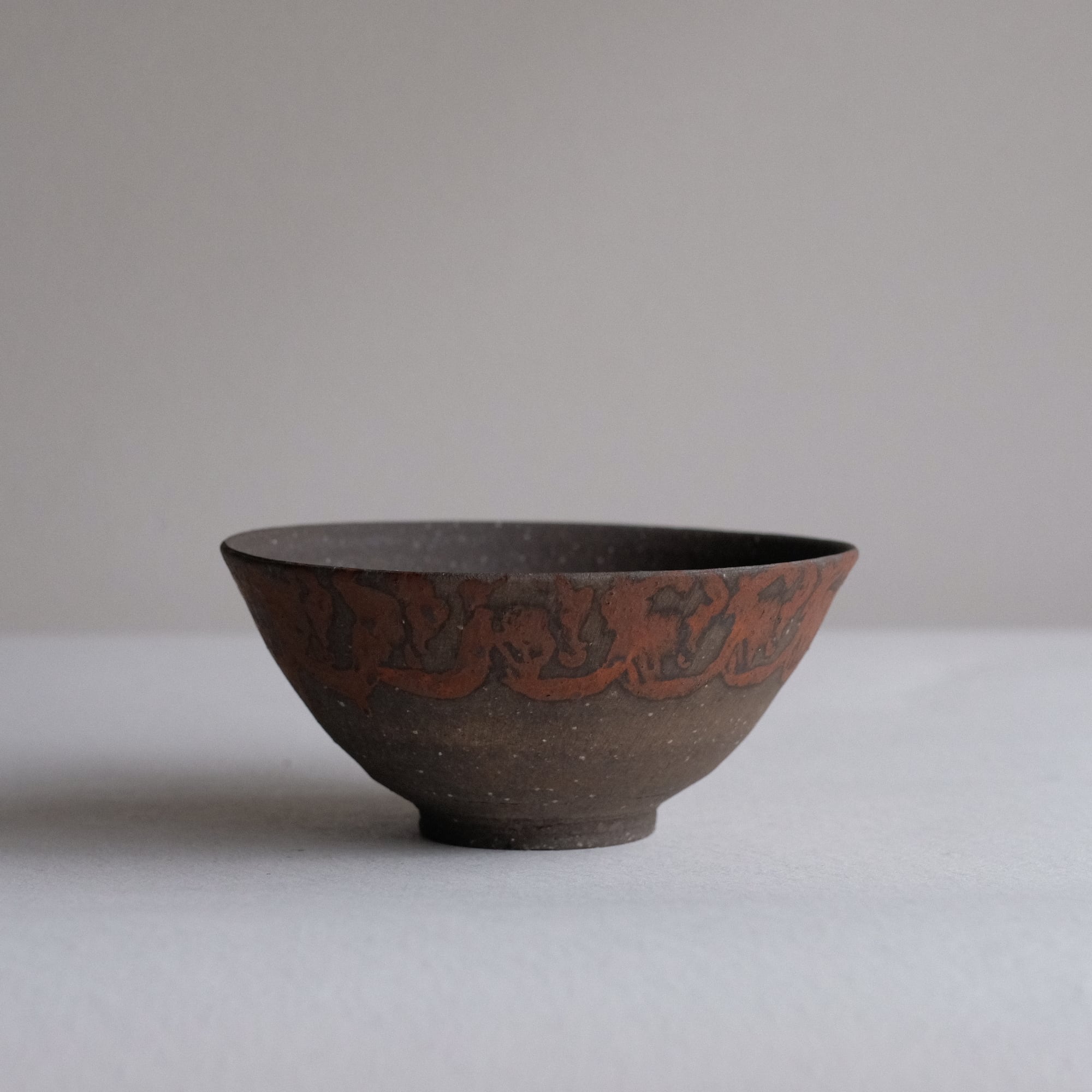 橘天馬 焼締中鉢 鉄絵 q