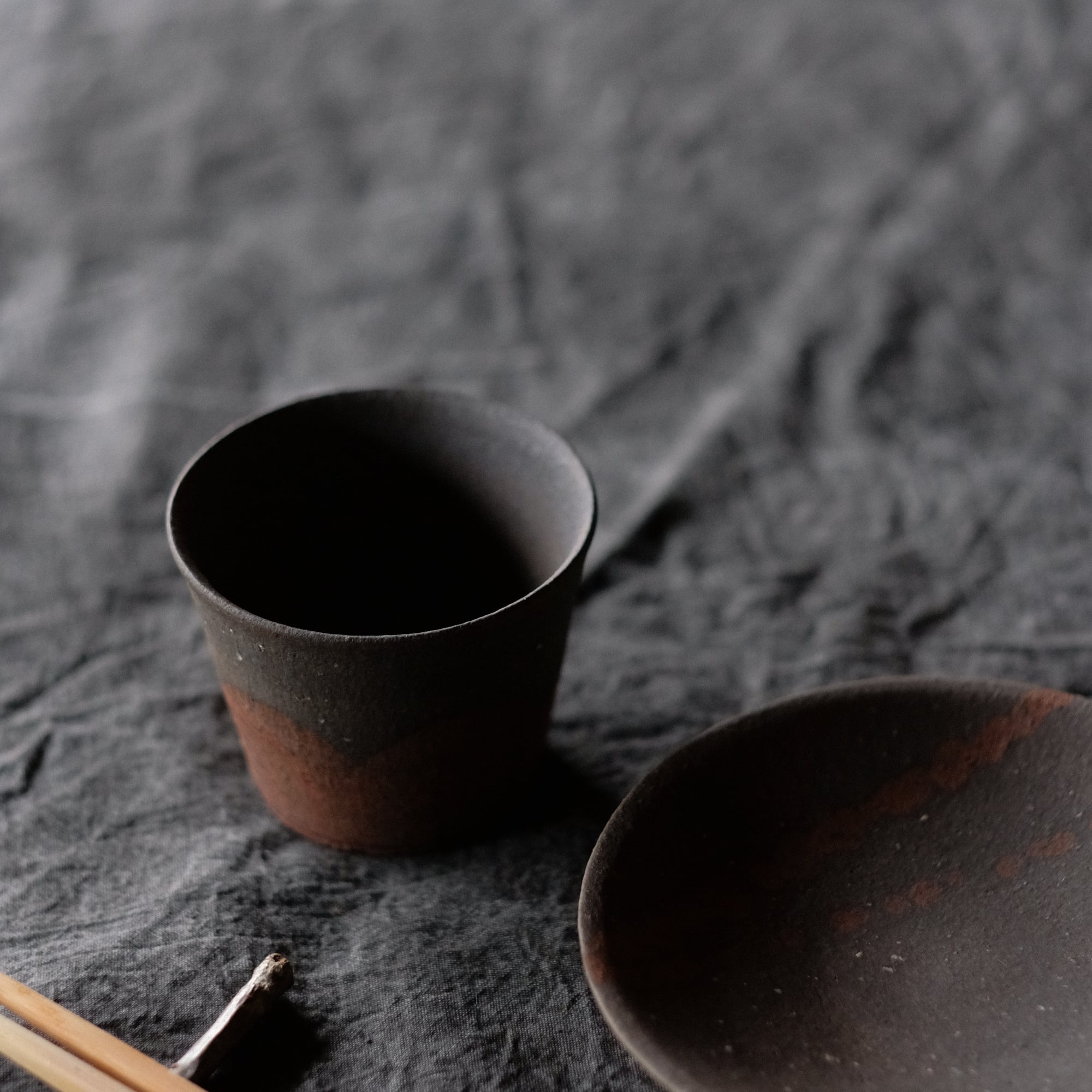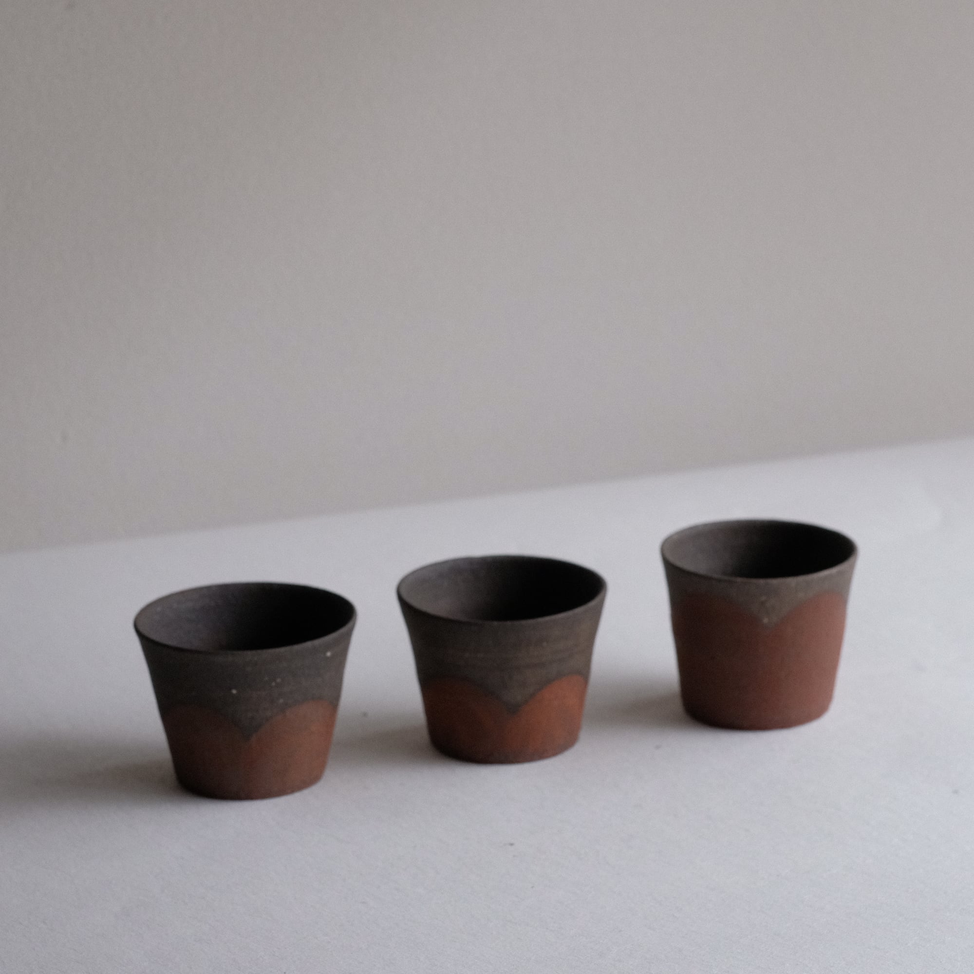 橘天馬 焼締猪口 鉄絵