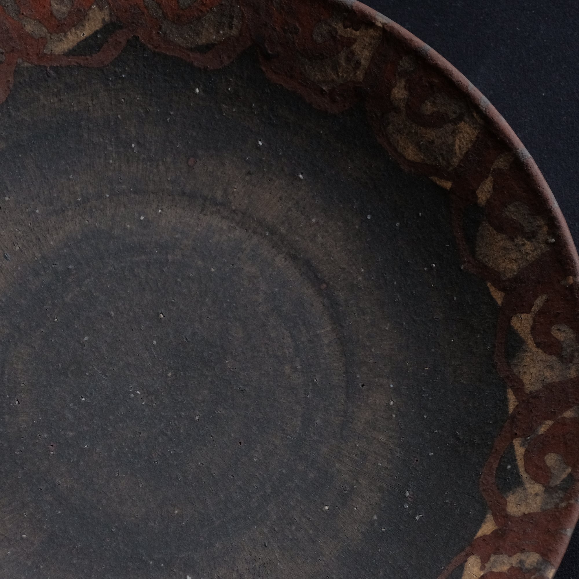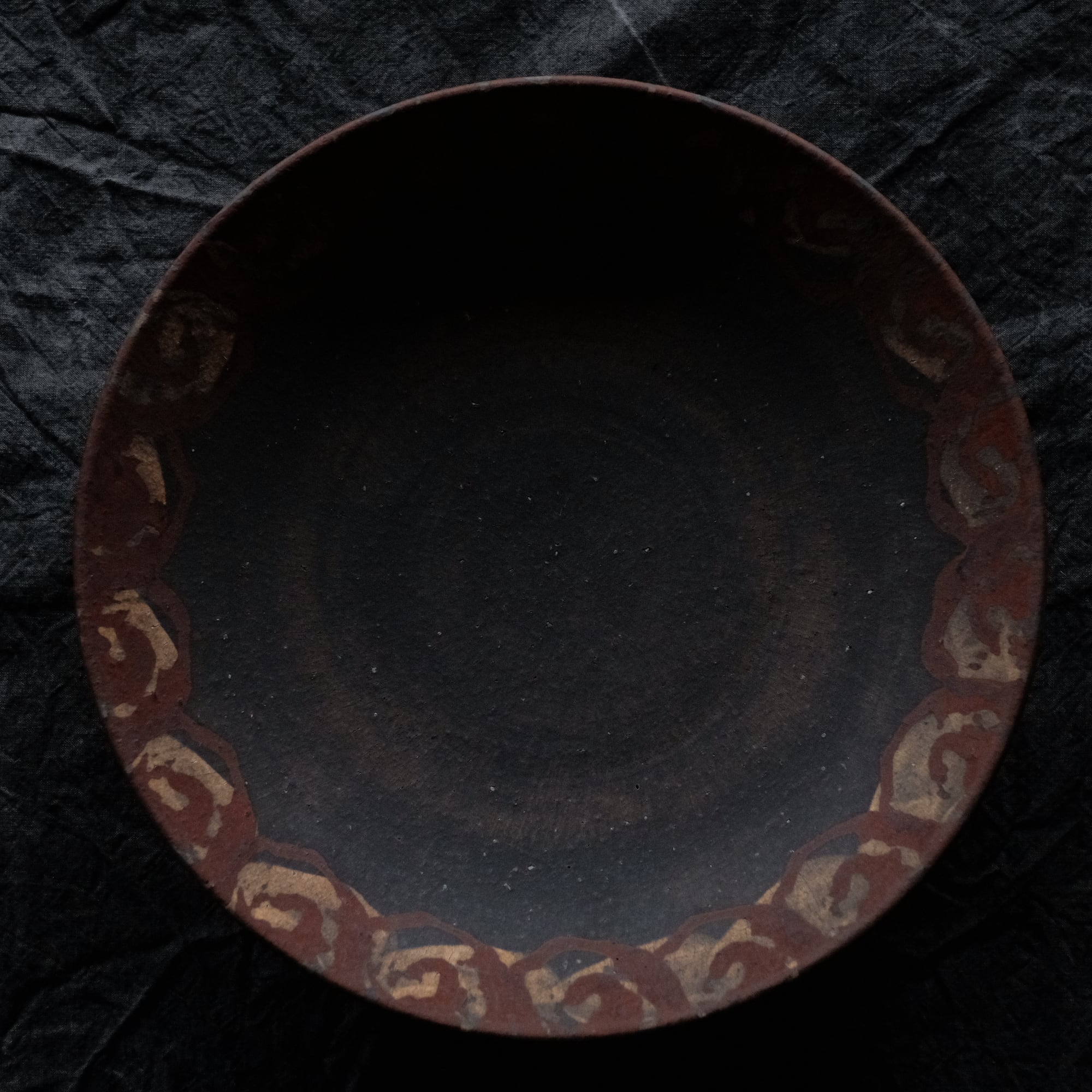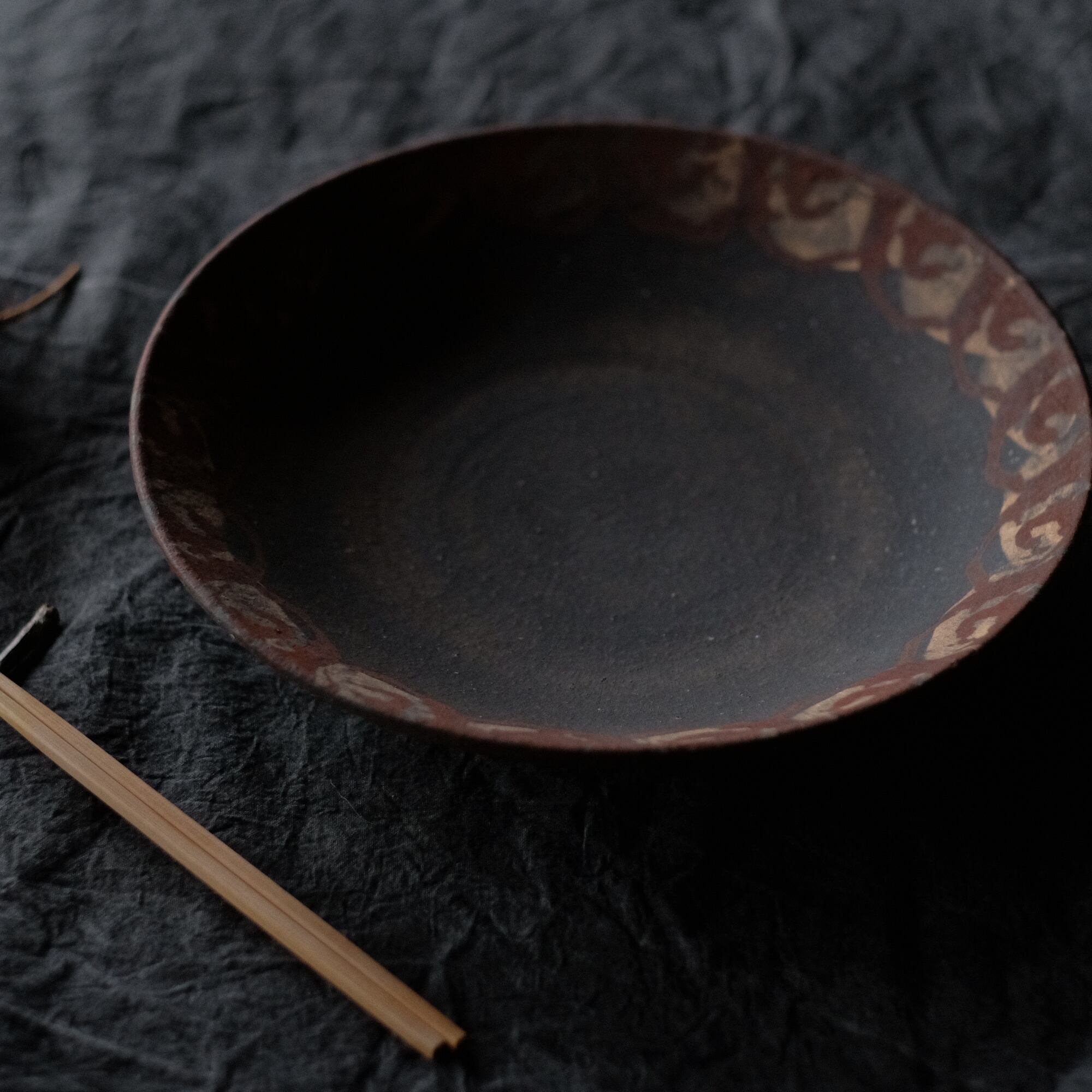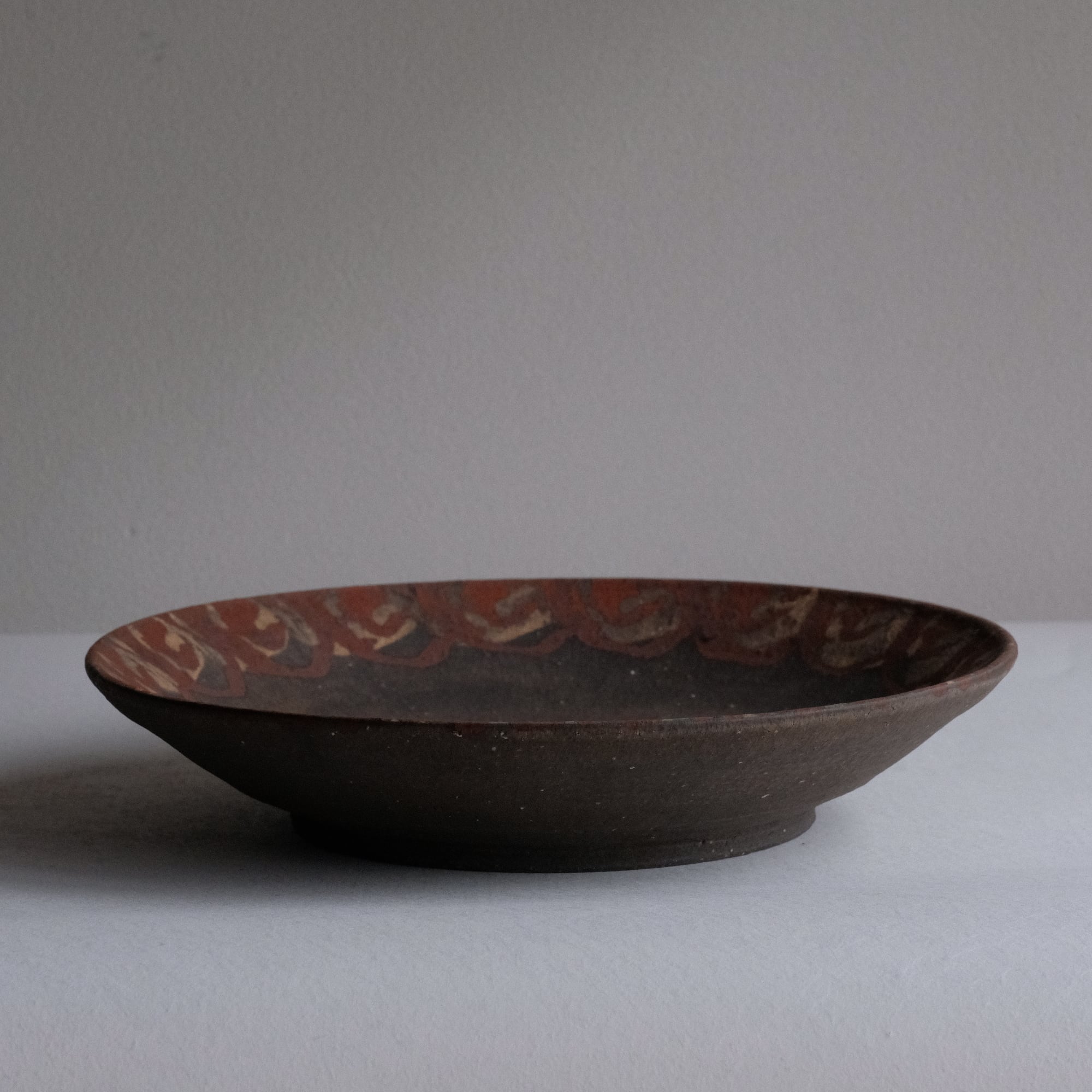 橘天馬 焼締大皿 鉄絵
