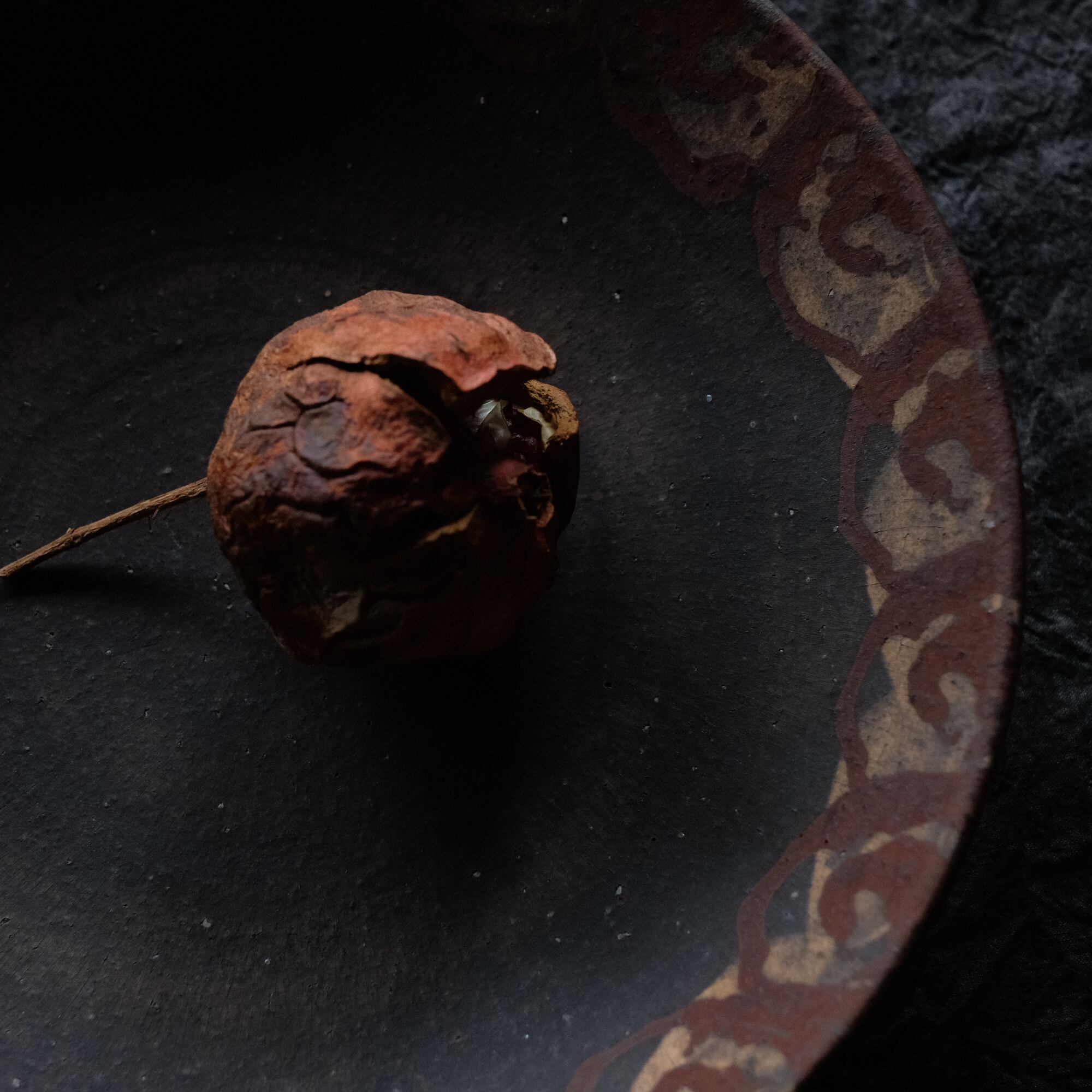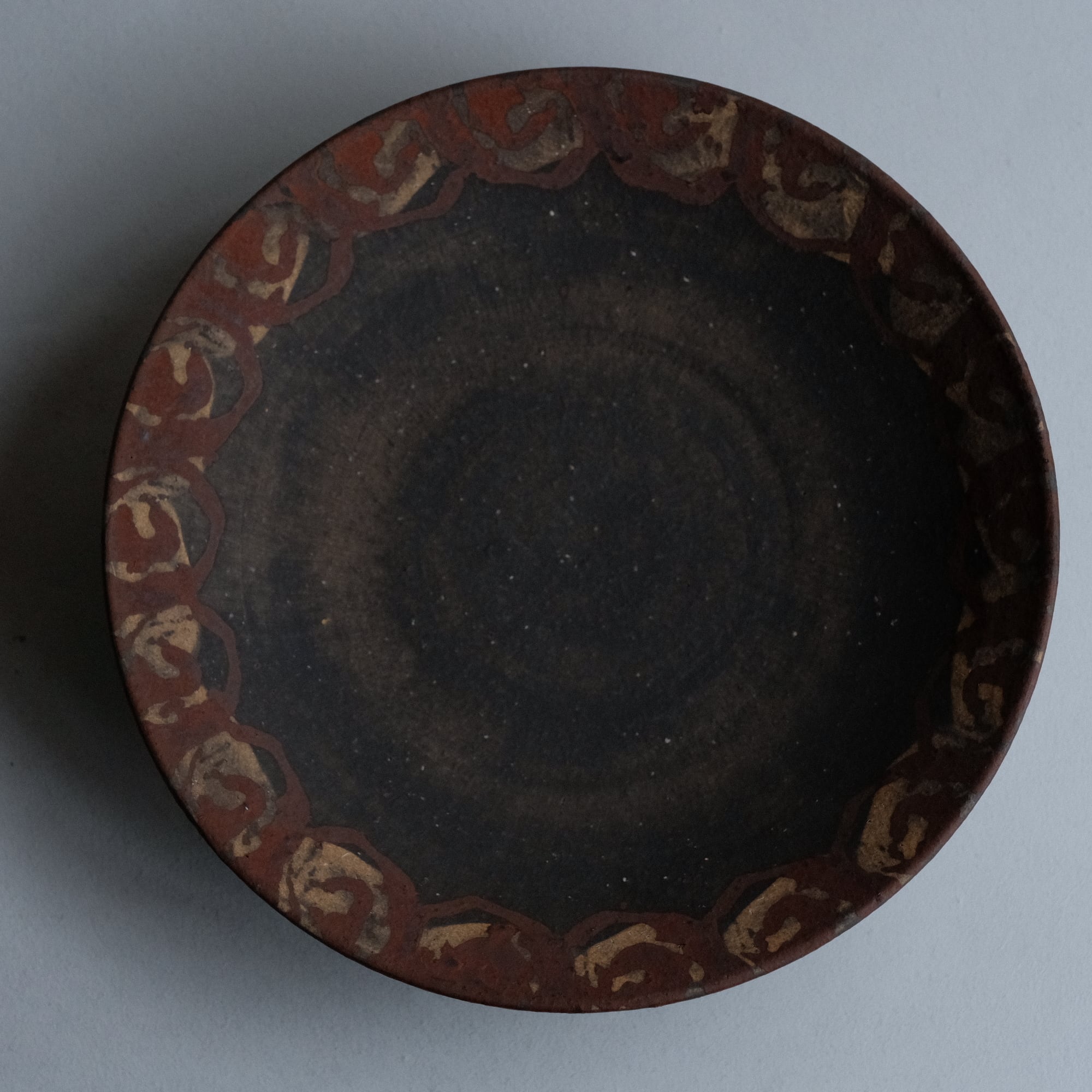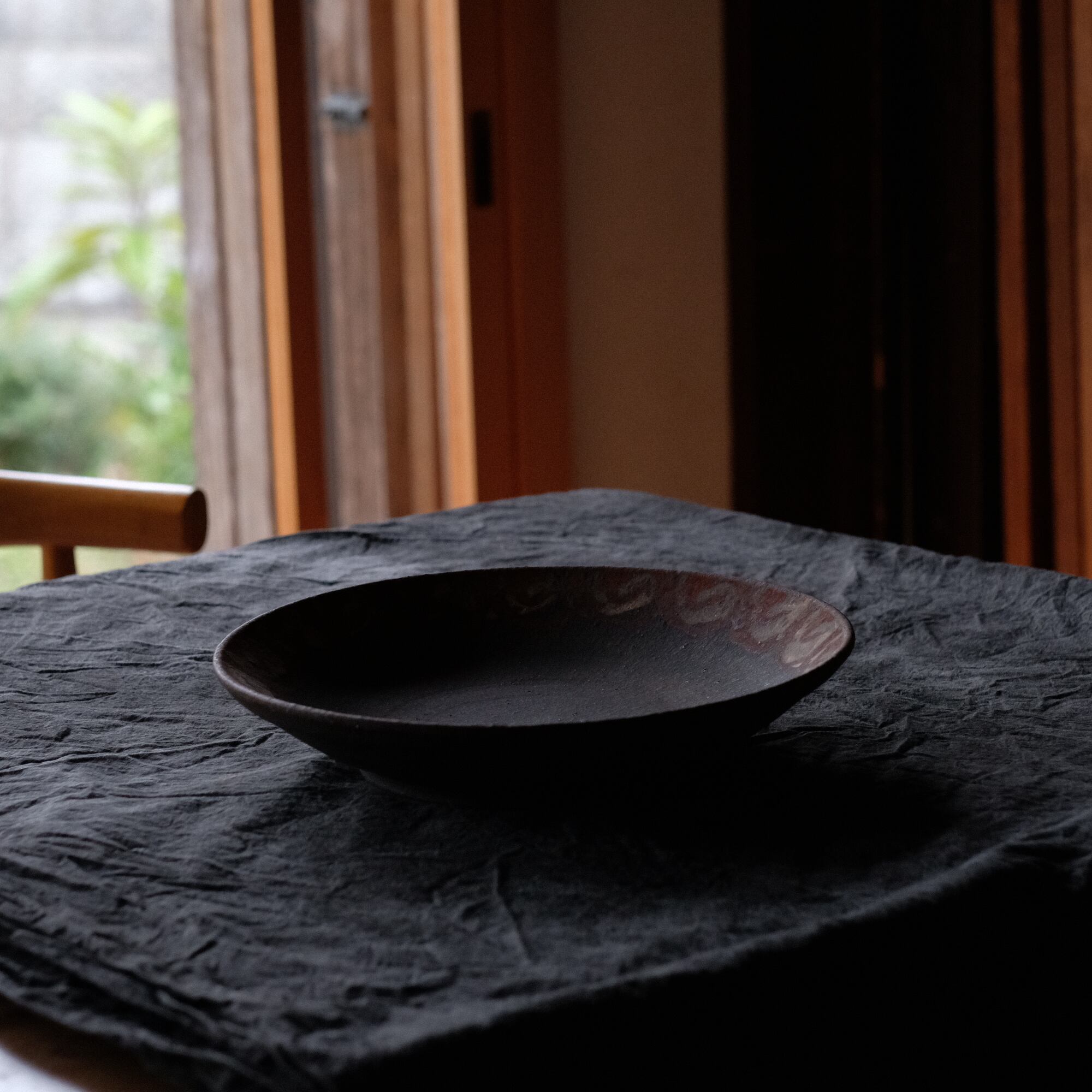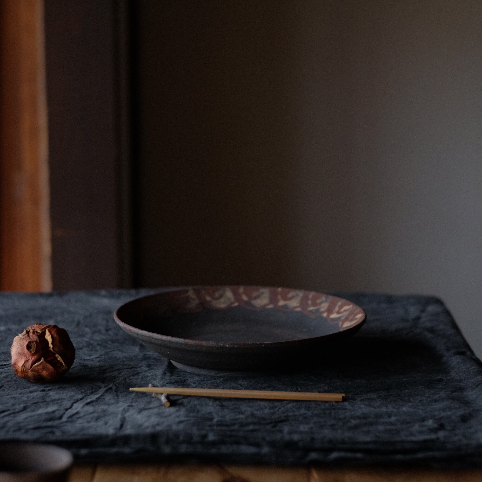 橘天馬 焼締大皿 鉄絵