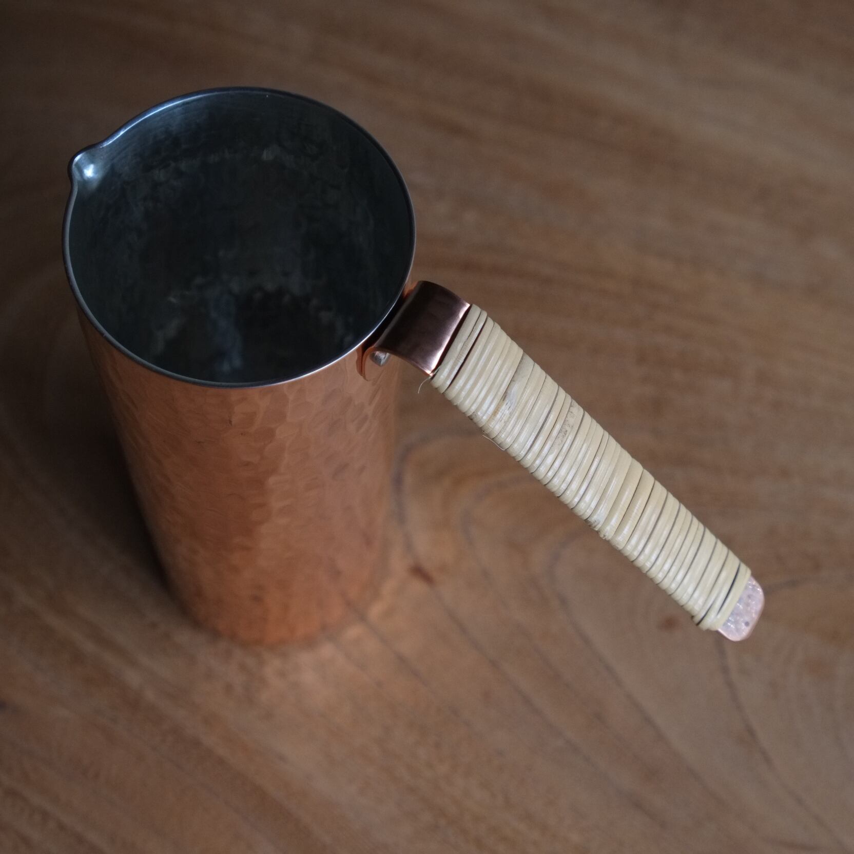 熱伝導性に優れた銅のちろり、内側はスズが引いてあるので緑青の心配もなくお手入れが簡単です。